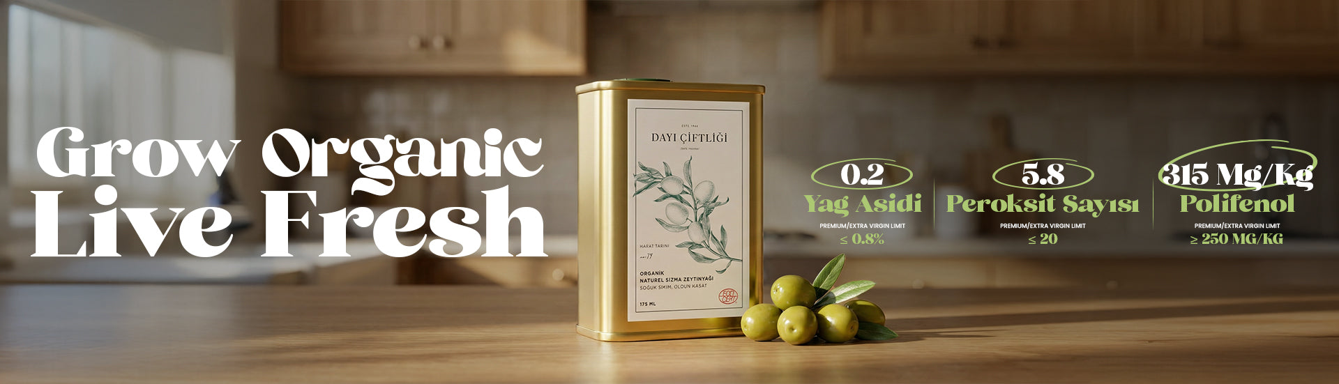 Organik Soğuk Sıkım Erken Hasat Zeytinyağı 0.2% Asit Oranı - 3 Litre